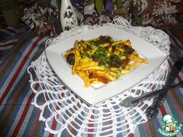 Долго думала. что же приготовить в качестве гарнира и решила сварить итальянскую пасту Капунти. Гулять, так гулять! Экзотика с экзотикой...