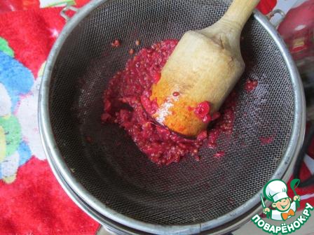 Ягоды протереть толкушкой через сито в отдельную миску.