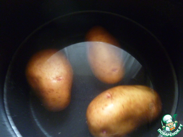 Кладем картофель в чашу мультиварки, заливаем водой так, чтобы картофель был полностью покрыт.