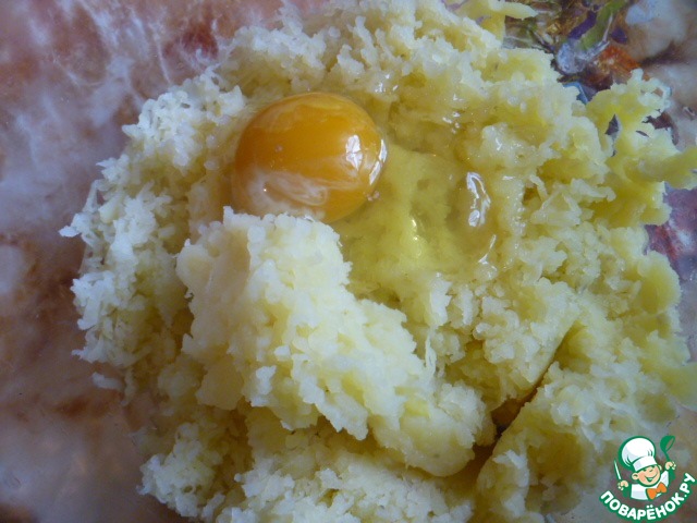 Сваренный картофель очистить и натереть на мелкой терке, посолить по вкусу, добавить яйцо.