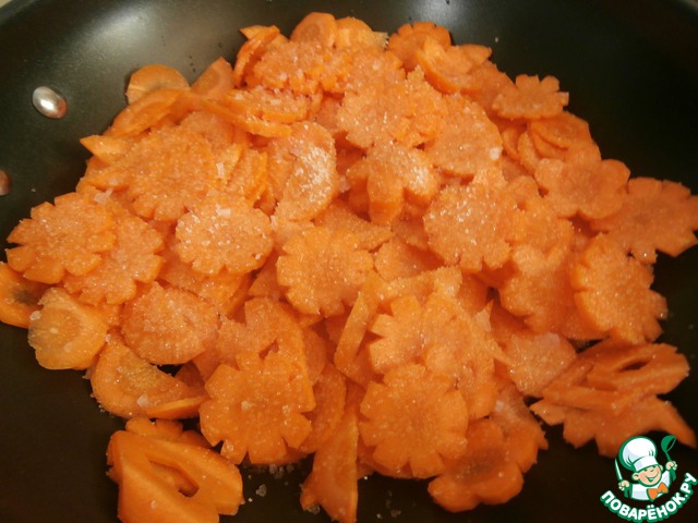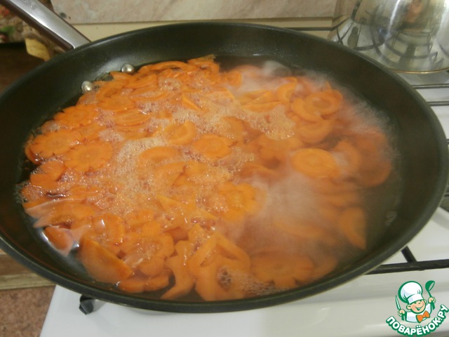 После этого обжарьте морковь с оставшимся отваром на сильном огне до золотистого оттенка.