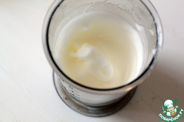 Белки взбейте с щепоткой соли до устойчивых пиков.