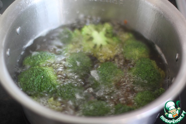 Брокколи разберите на соцветия, залейте водой и доведите до кипения.
