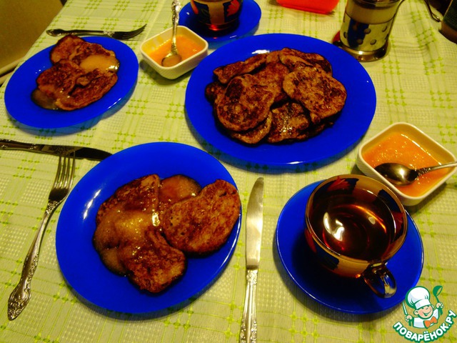 Подавать оладушки нужно с мёдом к чаю. Но если Вы положите меньше сахару и чуть больше соли и подадите их с обжаренными с луком грибами, то это будет совсем другое блюдо, но тоже очень вкусное. Приятного Вам аппетита! Надеюсь, что это блюдо вам понравится так же, как его любят в нашей семье.