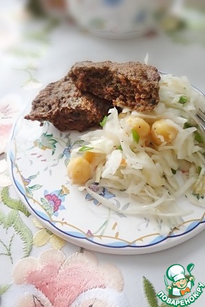 Печеночно-фасолевые оладьи и нутово-капустный салат