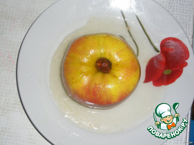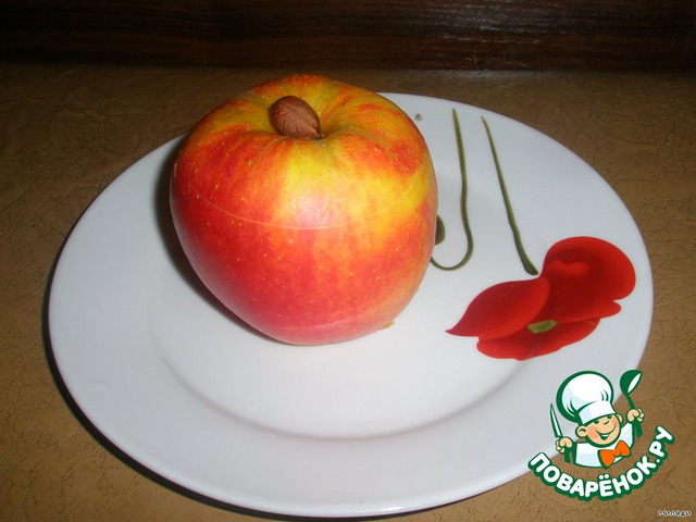 Закрываем яблочко "крышечкой" и ставим в микроволновку минуты на 2-3 при мощности 800. В духовке будет несколько дольше (печем до мягкости).