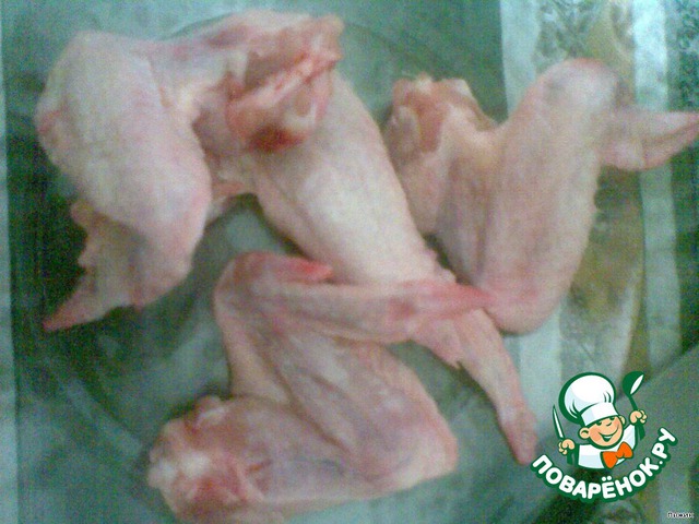 Kрылышки помыть, промариновать в маринаторе в соусах с приправками. Потом в аэрогриль на 30 мин при температуре 175 гр. на средней решетке.