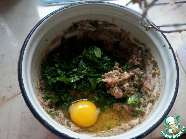 Яйца взбиваем с кефиром и отрубями, трем сыр на средней терке, мелко рубим укроп, сыпем соль, соду и специи, перемешиваем