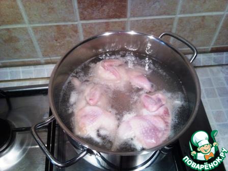 Перепелок моем. заливаем водой ( так что б прикрыть дичь наполовину). Ставим варить на медленном огне на 30 минут с прикрытой крышкой. Периодически помешиваем, переворачиваем перепелок и снимаем пену.