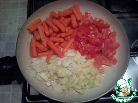 Моем и чистим овощи. Режем. пассеруем на растительном масле.