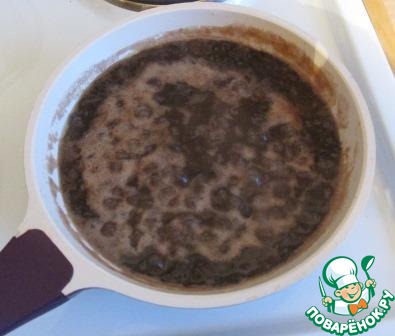 Добавляем к маслу размятую фасоль и коричневый сахар, доводим до кипения.