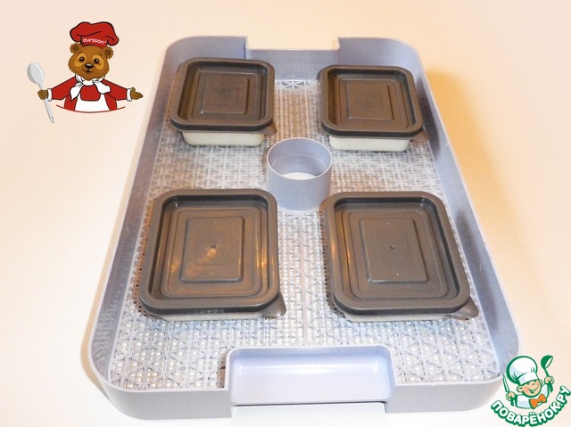 3. Поместите контейнеры в лоток дегидратора, установите температуру - 40С, время - 8 часов.