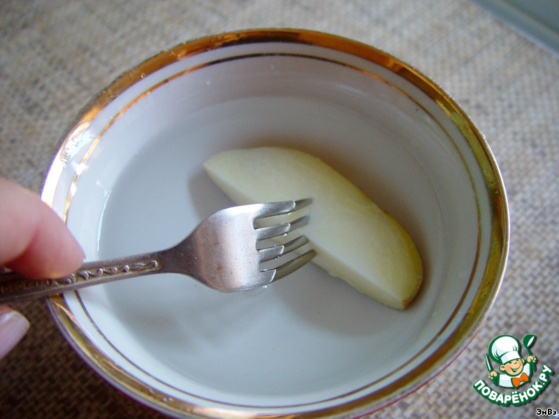 Ломтик картофеля обмакиваем в воду.