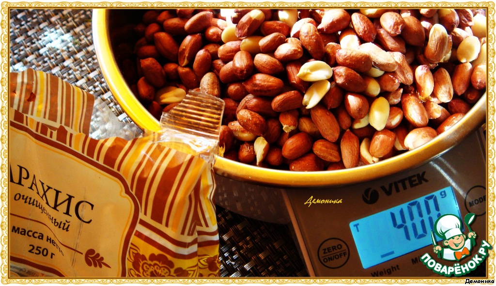 Арахиса купите больше, чем нужно по рецепту. Уверяю, в процессе переработки он вытаскается домочадцами. Поэтому возьмите больше, чтобы не нервничать.