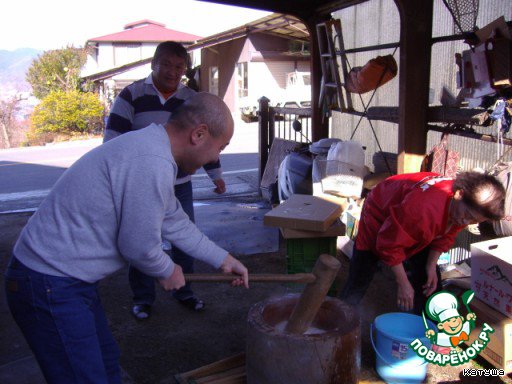 | Япония. Страна, способная повергнуть европейца в настоящий мировоззренческий шок. Хотя нам хорошо известны караоке, оригами, икебана, аниме, суши, саке, но там ВСЕ по-другому: отношения, одежда, обычаи, уклад жизни, обстановка дома... и, конечно же, еда. Я ходила вокруг этого рецепта несколько лет. Вот и пришeл его час, вернее, даже день. У меня подобрана целая папка рецептов и способов по изготовлению Моти. Для рядовой японки это очень простой рецепт, тем более что его основу, пасту, можно просто купить в магазине, можно приготовить и самой, из специальной муки из клейкого риса, особого сорта мотигомэ. Но для меня это было настоящее кулинарное приключение с множеством интересных остановок. Если вам интересно, приглашаю и вас. Начать хотя бы с того, что классическую пасту для моти выбивают здоровенные мужики деревянными молотами в деревянной ступе, там они перемалывают сваренные на пару зерна риса мотигомэ. Но... |