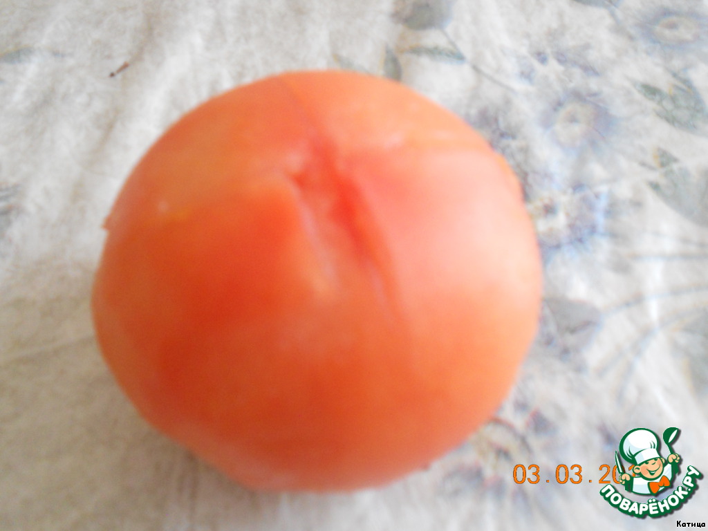 Помидор бланшировать и нарезать кружками.