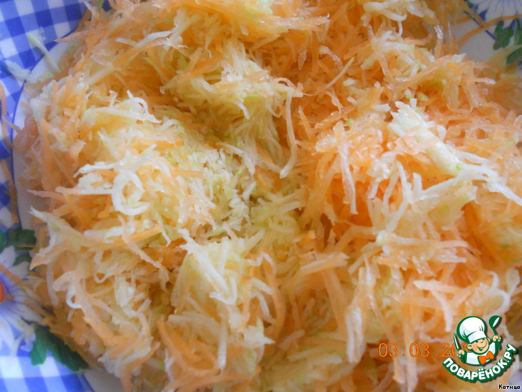 Теперь приготовим основу для пирога. Цуккини и морковь очистить.