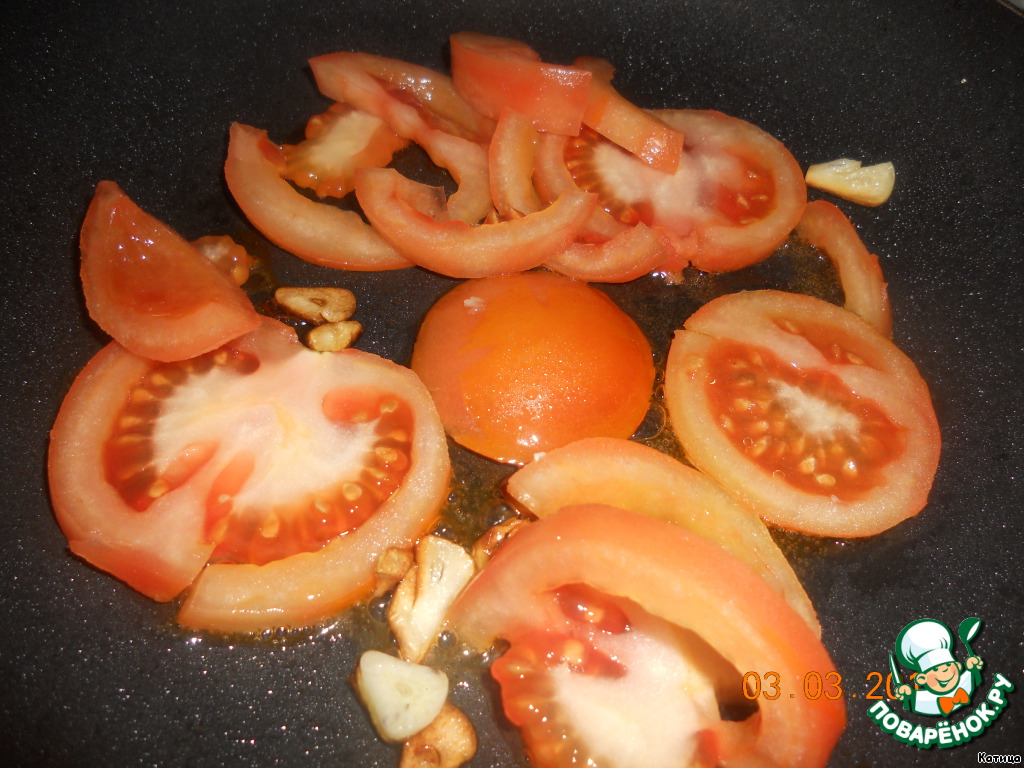 На этом же масле обжарить помидор.