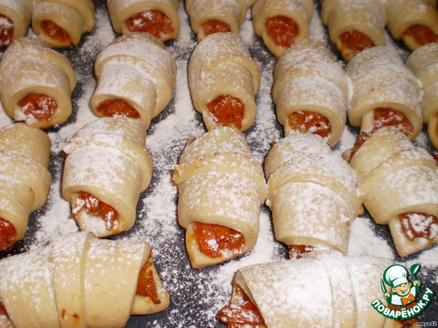 Готовые рогалики, достать из духовки. Посыпать сверху сахарной пудрой. Ну вот и все, угощайтесь.