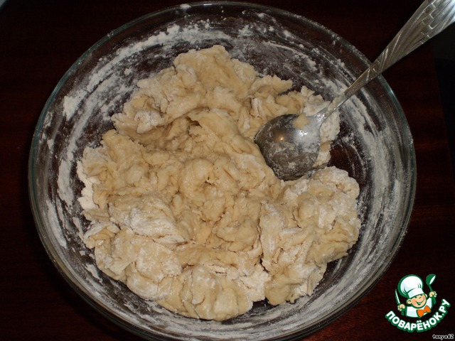 В миску налить растительного масла, минеральную воду, положить муку и замесить крутое тесто.