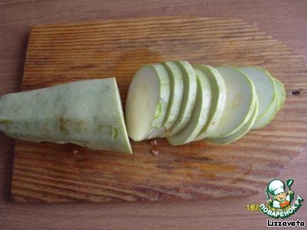 Баклажаны нарезаем кружочками средней тольщины, пересыпаем солью и отстаиваем для ухода горечи