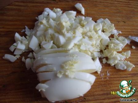 Яйца режем кубиками средней величины