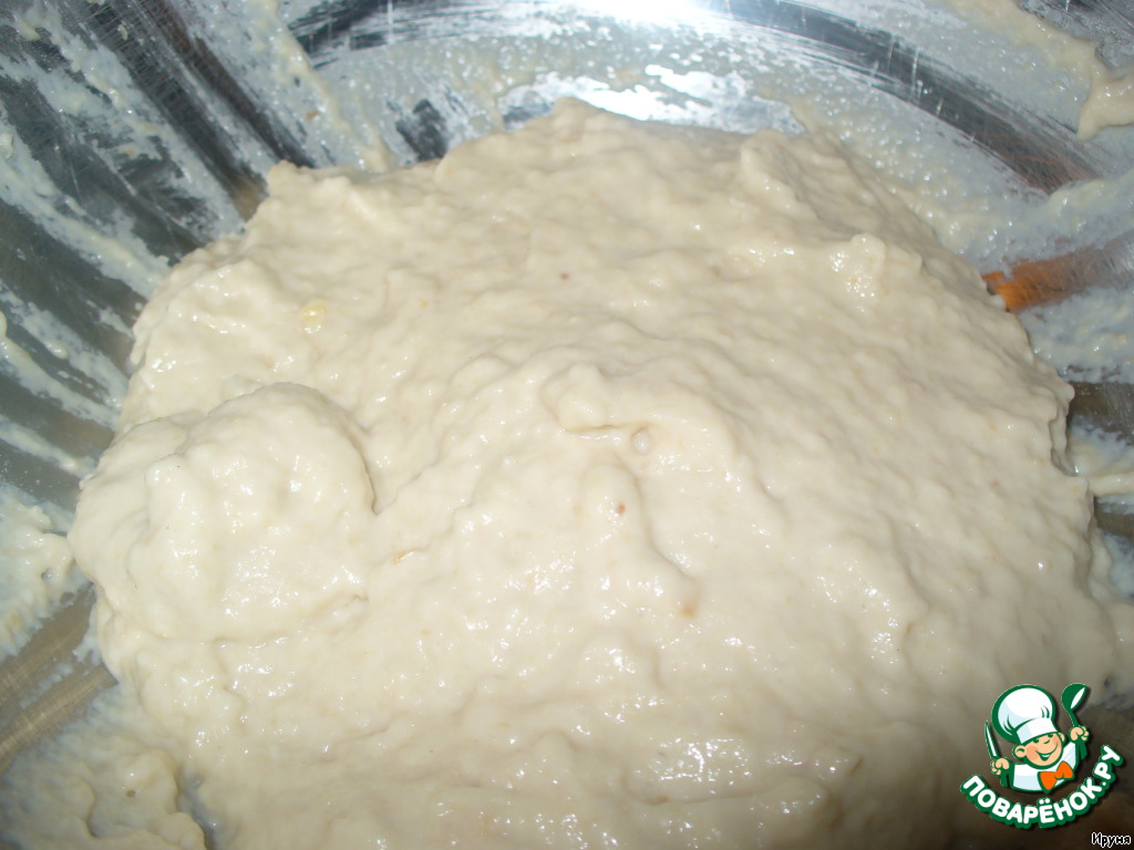 В полученное пюре добавляем дрожжи (пюре должно быть теплым еще), сахар, соль, масло, муку. Хорошо перемешиваем и ставим в теплое место для подъема. Я ставлю примерно на 30 минут. Тесто не особо сильно поднимается.