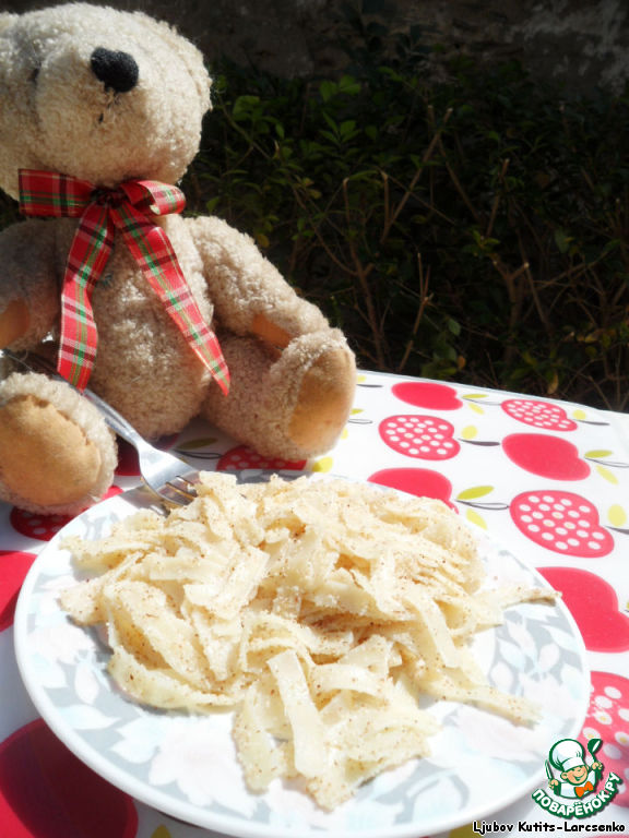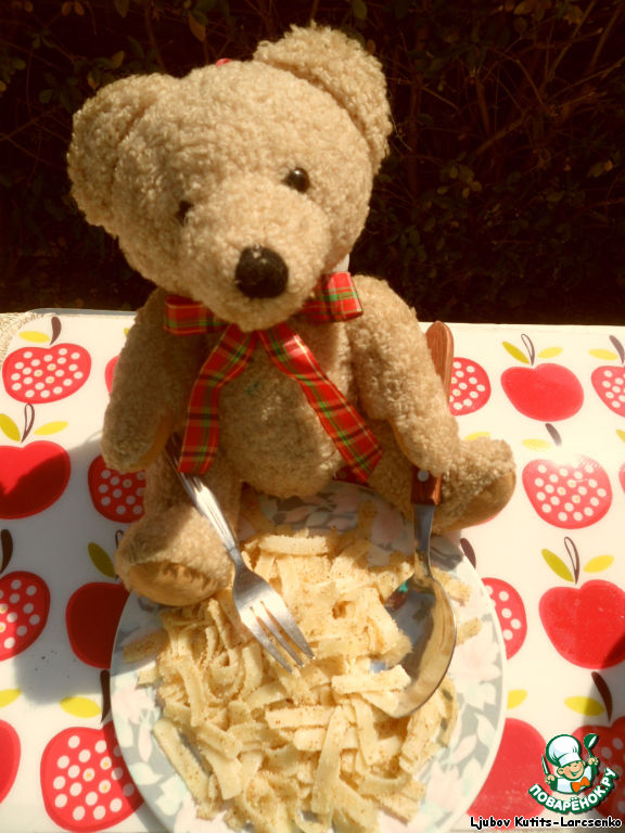 Я первый раз попробовала лапшу именно такую, без других добавок. Мне понравилось, необычно... ну, а потом, уже сама нафантазировала, можно и подсластить, можно орехи тёртые, мёд, ваниль, корицу... - кто, что любит. Любителям вегетарианского питания можно заменить масло на растительное. Делюсь идеей, а вы фантазируйте...