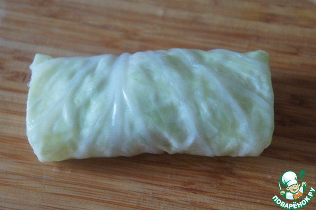 Капусту обработать так, как вы привыкли. Кто-то вырезает кочерыжку и припускает капусту в кипятке несколько минут, кто-то отделяет листья по одному и обваривает их по отдельности от кочана. У молодой, нежной капустки кочерыжку вырезать было очень легко, что я и сделала. После этого поварила капусту в кипящей подсоленной воде минуты 4, достала, сняла примерно половину листьев, пока они легко снимались, а кочан вернула в кипяток еще на 3 минуты. После этого и оставшиеся листья хорошо снимались. Отвар сохранить.