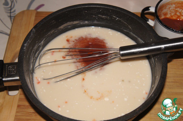 Затем добавить томатную пасту, тщательно перемешать и, наконец, частями развести соус отваром до нужного вам количества. Если требуется, досолить.