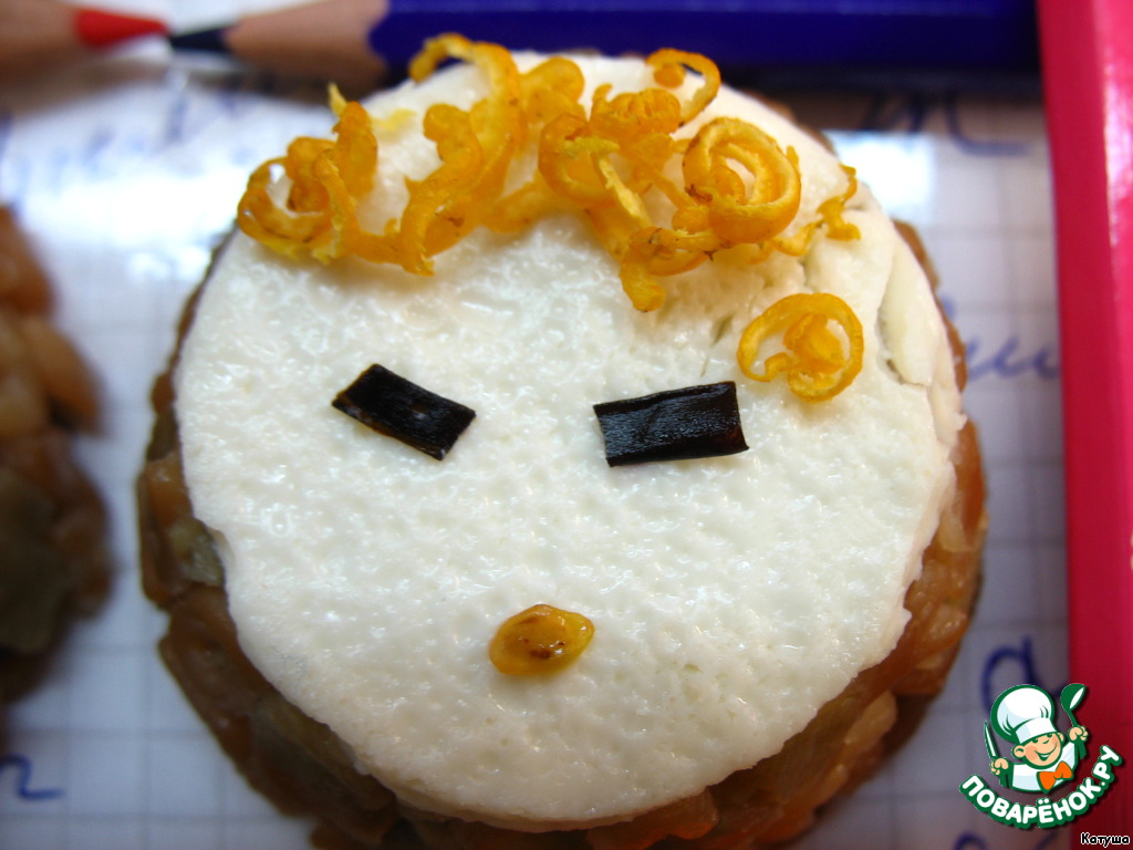 (волосы-грецкий орех; рот,глаза- кожура баклажана, веснушки-горчичное семя)