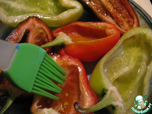 Смазать перцы внутри оливковым маслом.