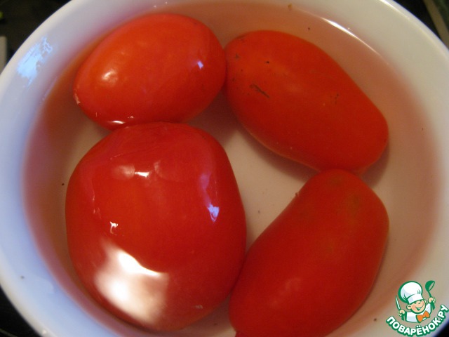 Помидоры обдать кипятком.