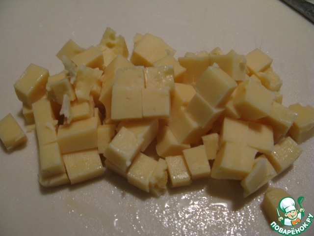 Сыр нарезать кубиками.