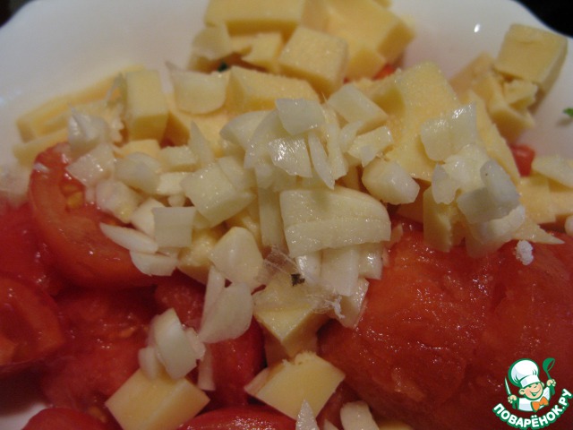 Нарезать помидоры на средние кусочки.