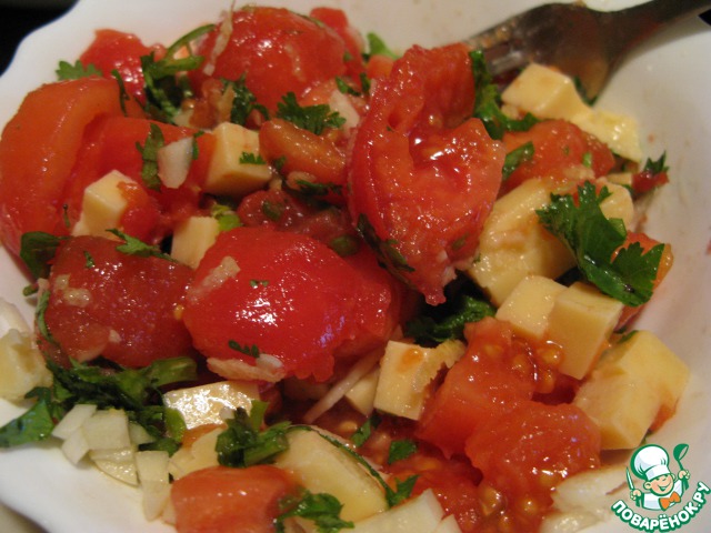 Смешать помидоры с сыром, добавить лимонный сок.
