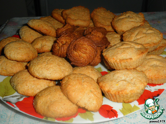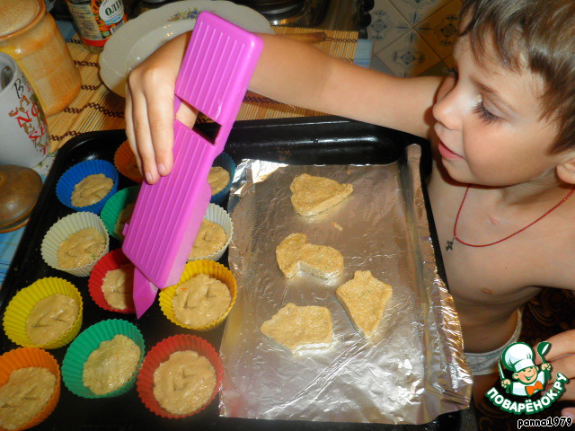 Первый противень закончился и ушел на выпечку, а тесто все еще присутствовало, и энтузиазм у помощников не угасал:) Было решено сделать маленькие кексики, но тут и формочки закончились, а тесто - все еще нет. Остатки теста выложила в формы для печенья.