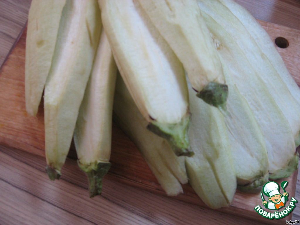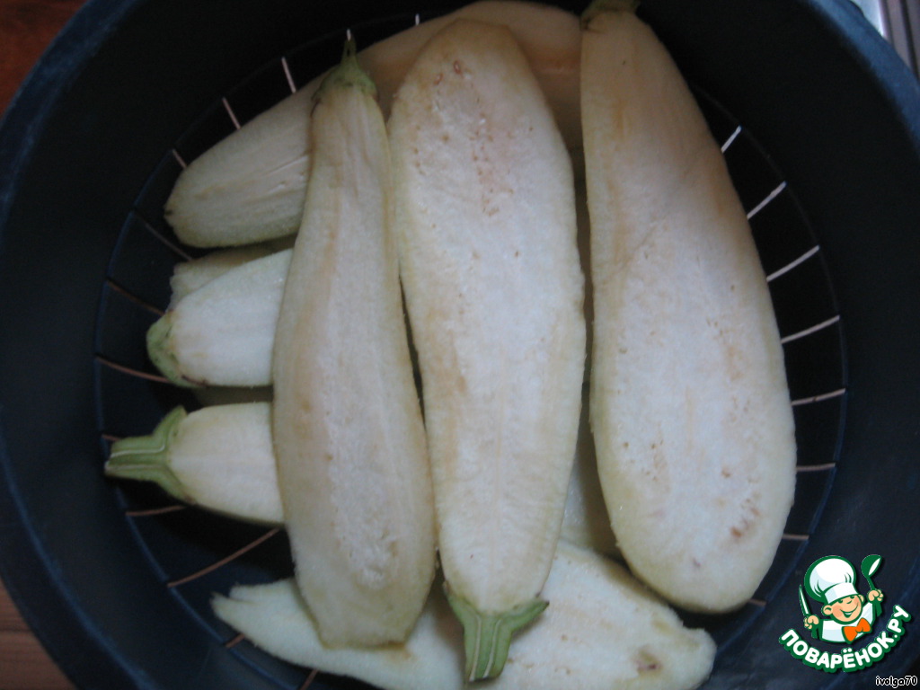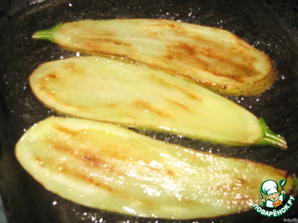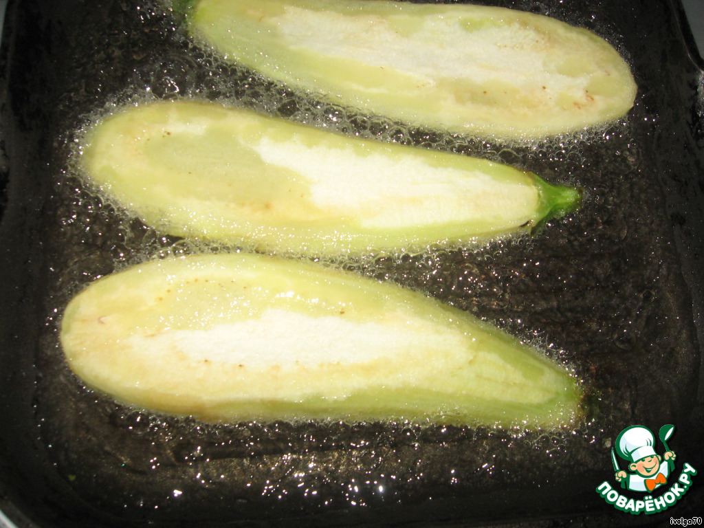 Теперь ставим сковороду с маслом на хороший огонь. Если масло кипит, то баклажаны возьмут меньше масла. А нашу парочку отправляем на чистое полотенце обсушиться.