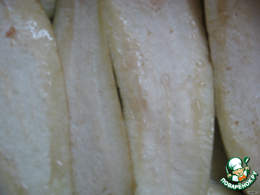 Разрезаем вдоль, примерно 7 мм толщиной.