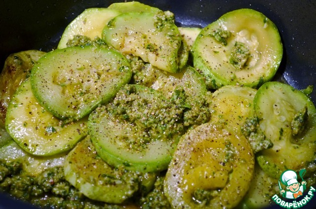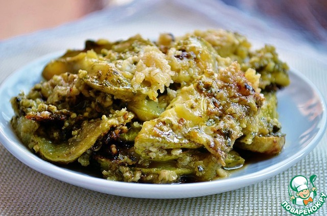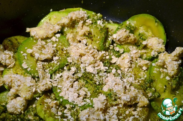 Рецепт "Кабачки с соусом песто в овсяной крошке в мультиварке":