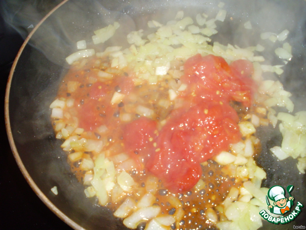 В это же время: лук и чеснок порубить и поджарить в оливковом или растительном масле.