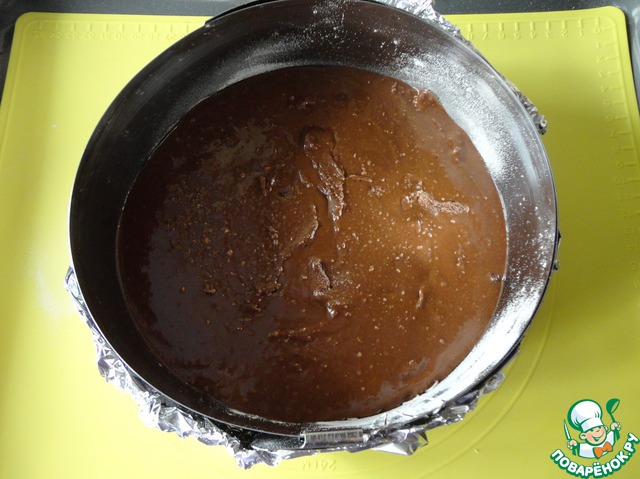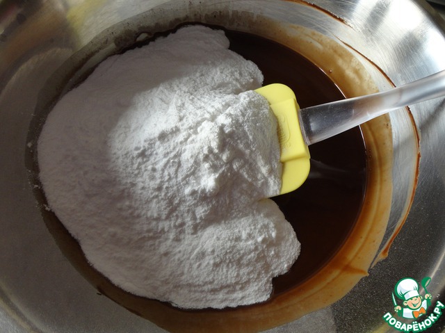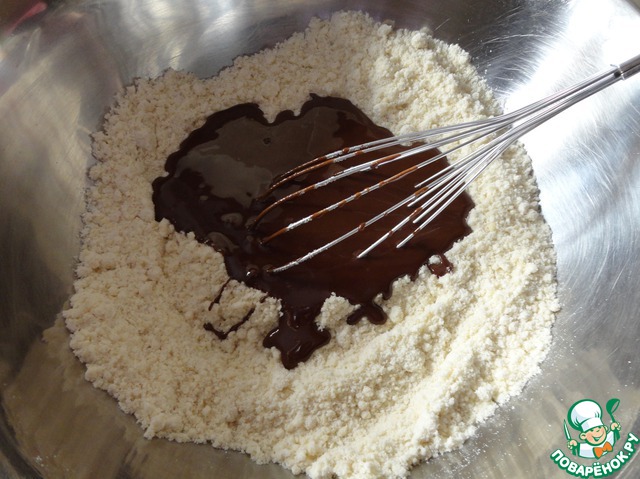 В два приема добавляем шоколадную массу, хорошо перемешиваем.