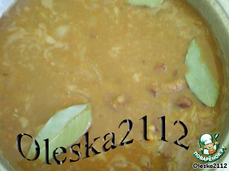 Отвар фасоли слить, а фасоль залить соусом, при необходимости добавить ещё отвар фасоли в соус. (Я люблю чтобы соуса было много, почти как суп. :-D ) Ставим наш цимес на плиту, добавляем лавровый лист и тушим 30 минут. Перед окончанием приготовления цимеса добавляем порубленные мелко грецкие орехи.