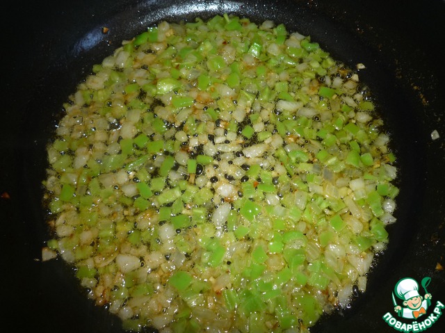 Добавить чеснок, затем перец.