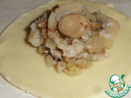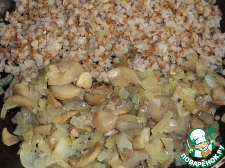 5)Добавляем отварную гречку, солим, перчим (или добавляем грибной кубик).