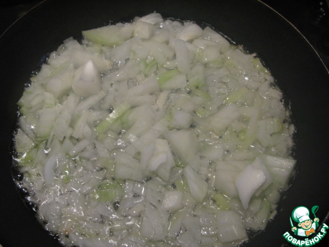 Лук порезать. Масло разогреть на сковороде, положить туда лук.