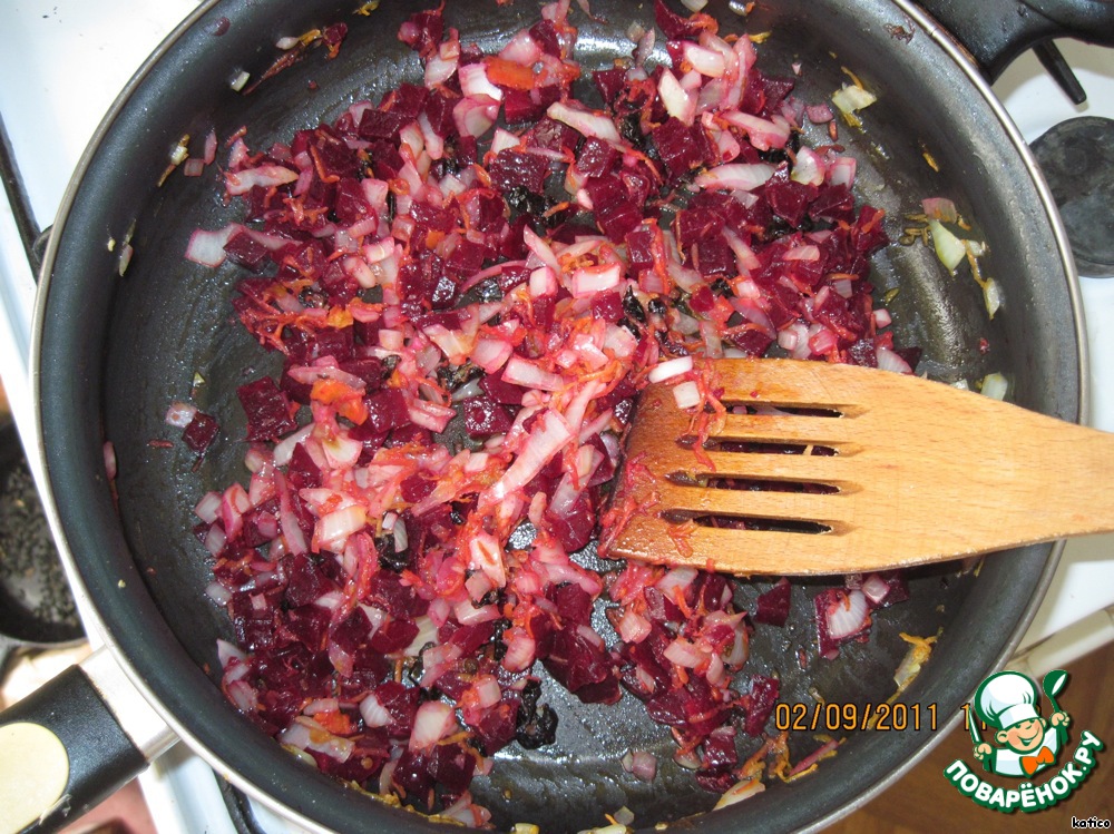 Добавить порезанную кубиком свеклу, хорошо перемешать.