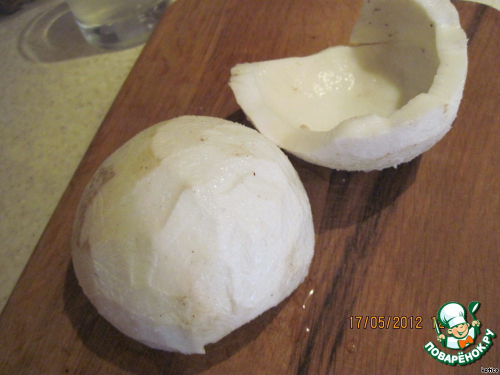 Очищаем орех от внешней жесткой и внутренней мягкой кожуры.