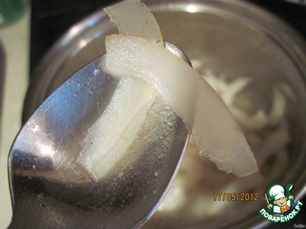 Кокос станет полупрозрачным, а если он старый и мы использовали воду вместо сока - карамель станет молочно белой.