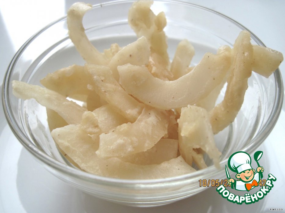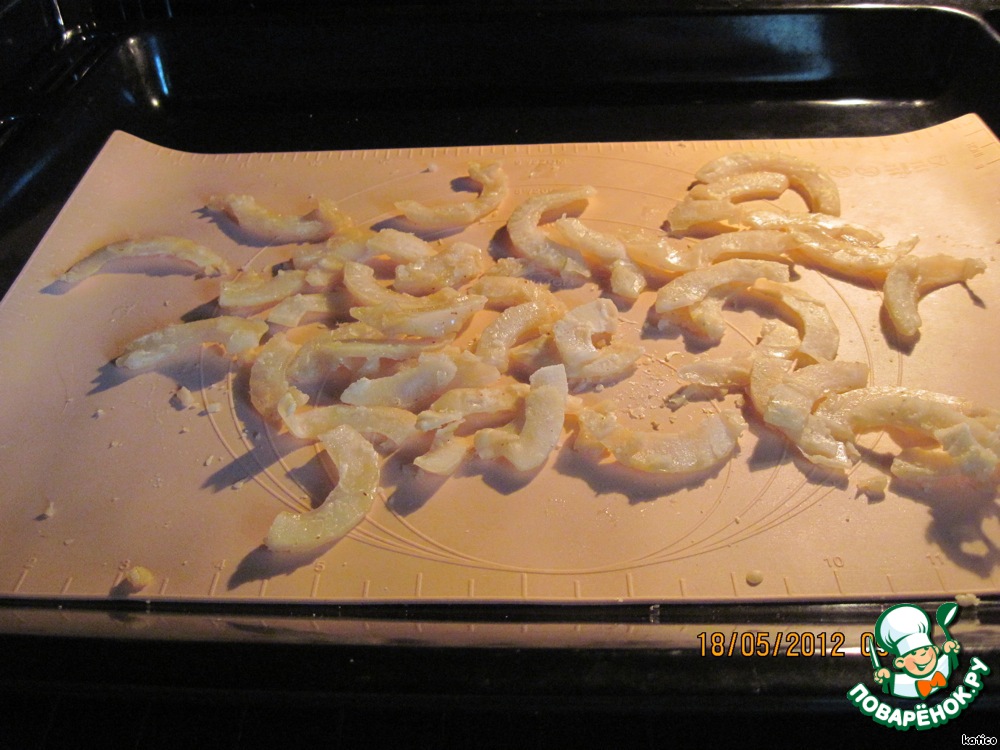 Дальше выкладываем кокос на силиконовый коврик, даем подсохнуть, я подсушиваю в духовке при минимальной температуре около 30 минут. Кокос должен стать хрупким. Даем ему остыть и наслаждаемся вкусным и оригинальным снэком. :-)
